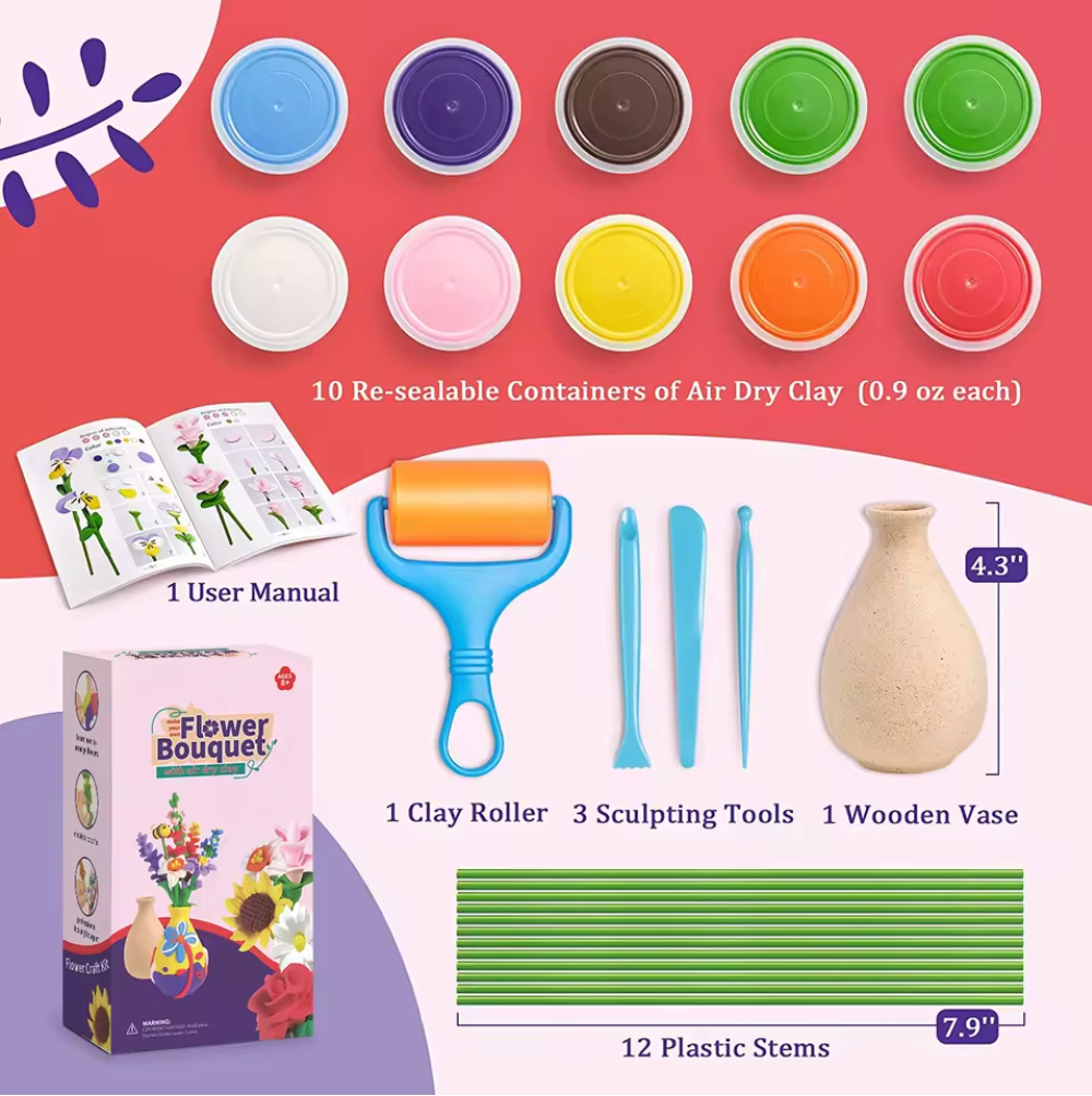 🌸 Stwórz własny, kolorowy bukiet kwiatów z piankoliny, który zachwyci każdego! Ten zestaw to doskonała zabawa manualna i artystyczna dla dzieci oraz dorosłych. Dzięki łatwej w użyciu, lekkiej piankolinie, możesz własnoręcznie wykonać przepiękne kwiaty, które staną się wyjątkową dekoracją wnętrza lub idealnym prezentem.