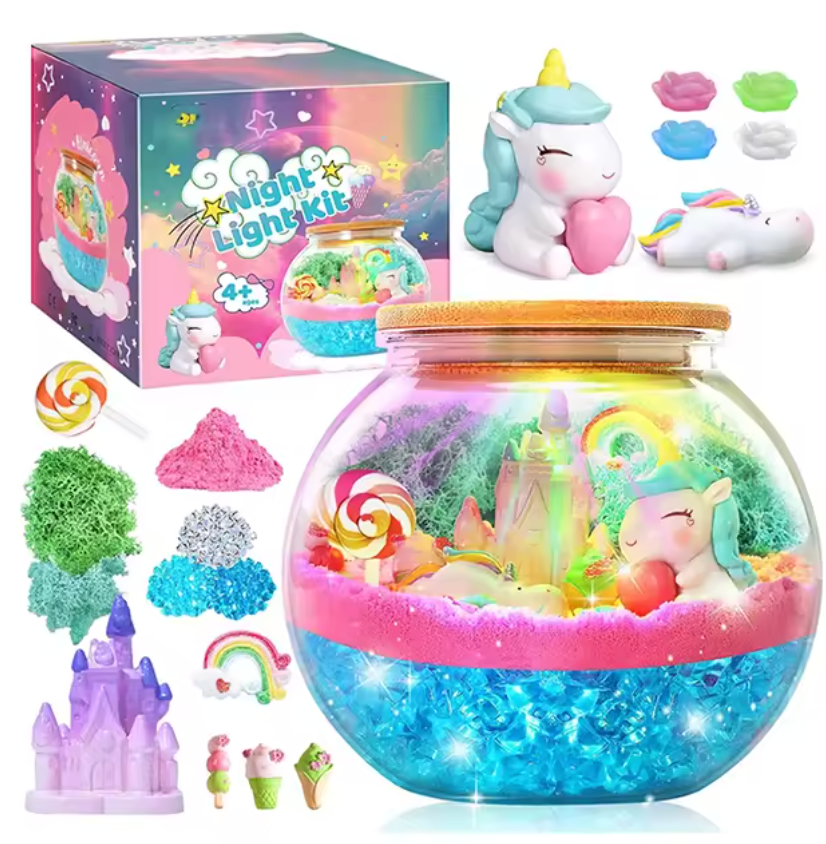 Zestaw kreatywny jednorożce terrarium lampka led pilot piasek kinetyczny